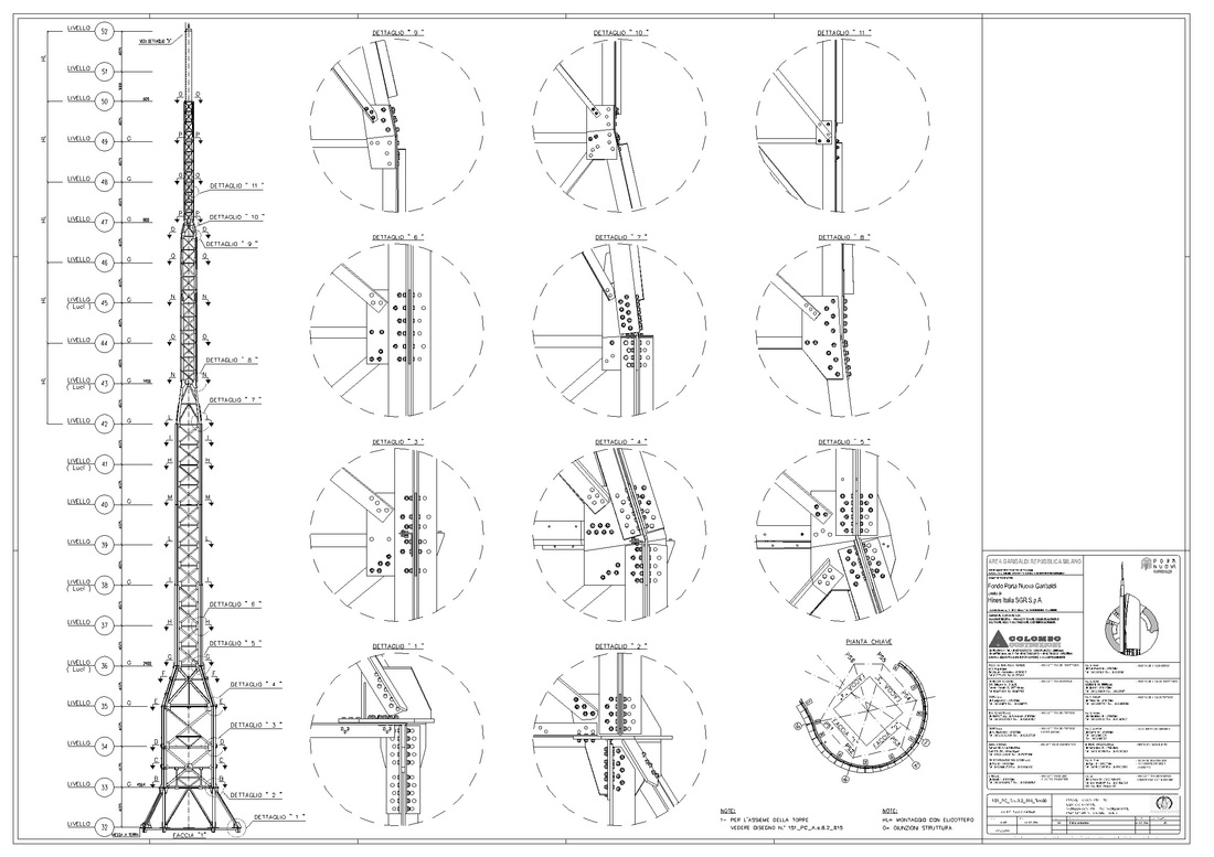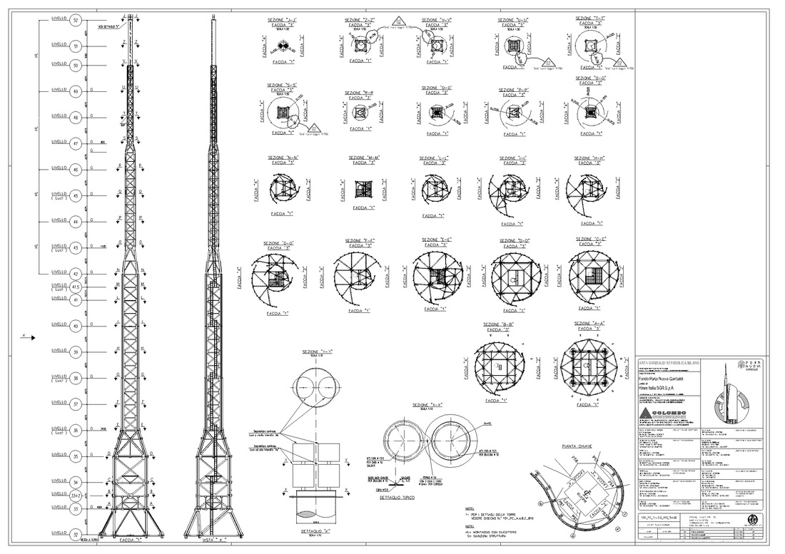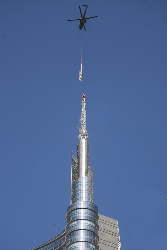 in collaboration with Seval s.r.l.. It is a spire that, starting from the roof of the building at a height of