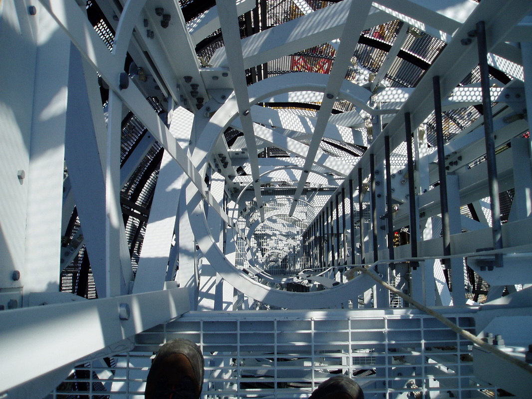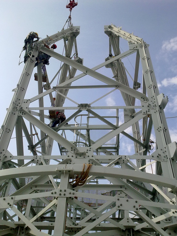 The structure is covered with spires made of microperforated metal sheet in stainless steel and it is fully illuminated and heated to prevent ice formations, which could be dangerous if they detach and could also compromise the stability and security of the tower.